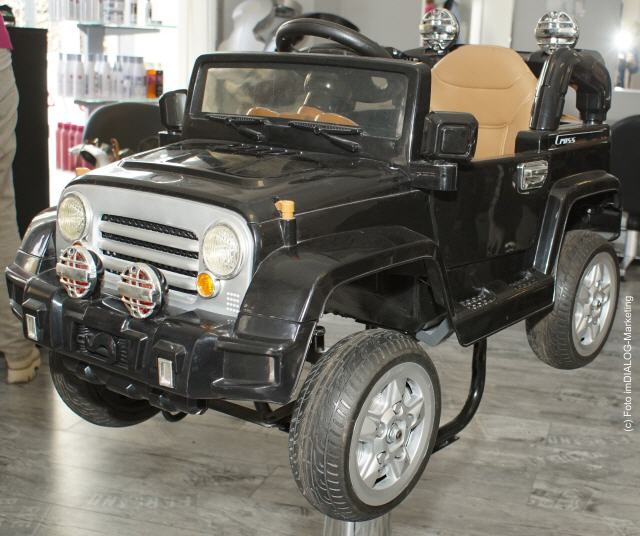 Im Kinder-Jeep lassen sich die Kleinsten prima und entspannt stylen. Jeder will der Erste sein. So entspannt war der Friseurbesuch mit den Kids noch nie. Unser Haarstudio ist bekannt für die Kinderfreundlichkeit und deshalb halten wir genügend Spielzeug und auch eine süße Belohnung für die Kleinen bereit.